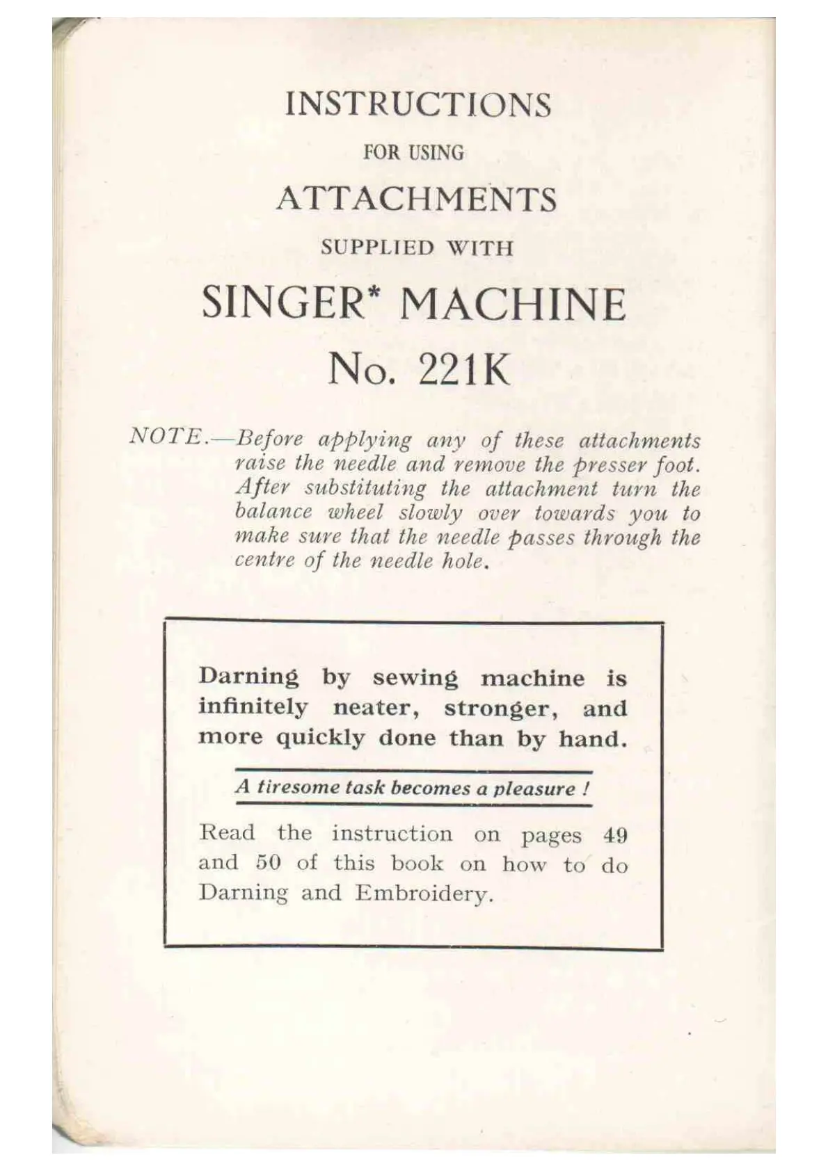 Singer 221K - SEWING ATTACHMENTS GUIDE