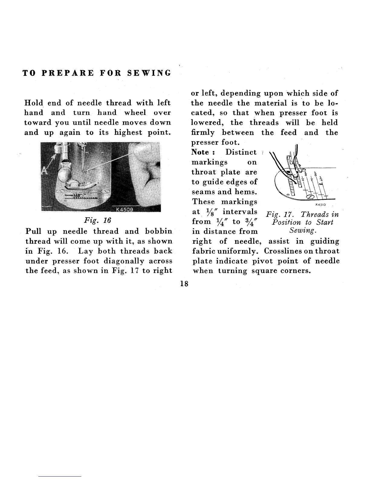 Singer 222K - Preparing the Machine for Sewing; Bringing Up Bobbin Thread; Positioning Threads for Sewing Start