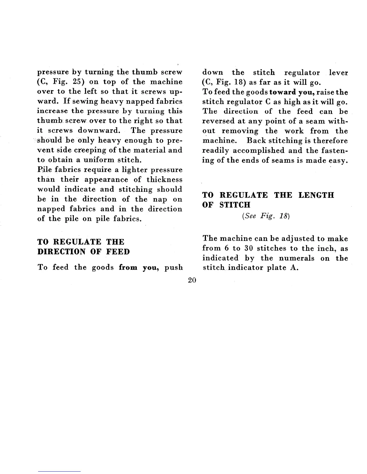 Singer 222K - Adjusting Feed Direction and Stitch Length; Controlling Feed Direction; Setting Desired Stitch Length