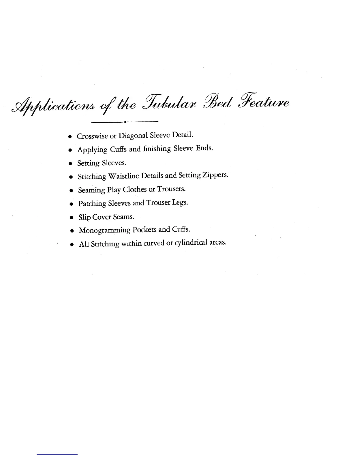 Singer 222K - Tubular Bed Feature: Applications; Versatile Sewing Applications