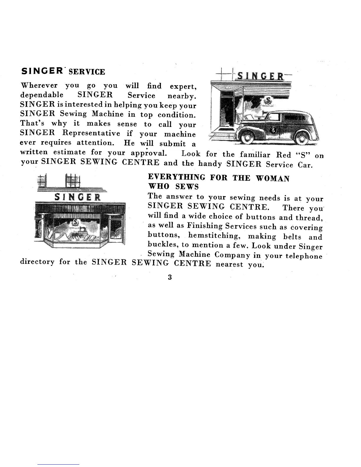 Singer 222K - Singer Service and Retail Network; Customer Service and Support Availability; Sewing Centre Offerings and Services