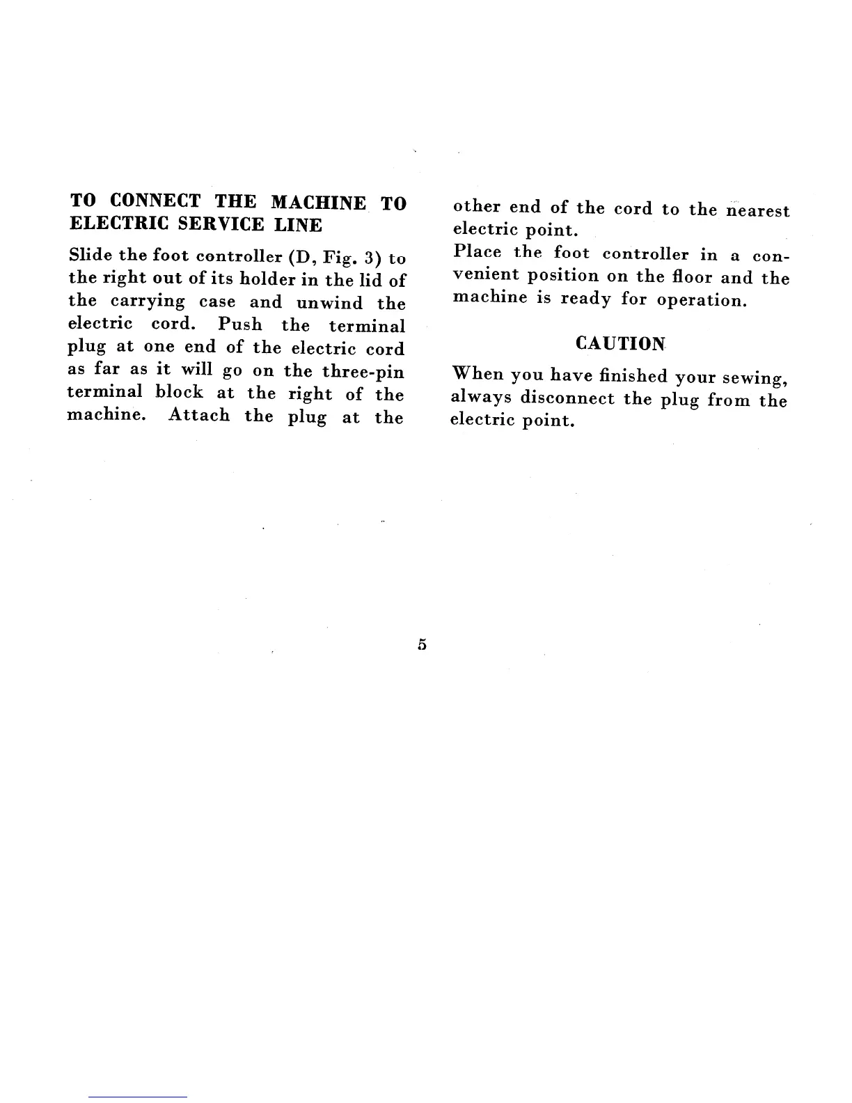 Singer 222K - Connecting the Sewing Machine to Power; Plugging In and Initial Setup; Post-Use Safety Measure: Disconnecting