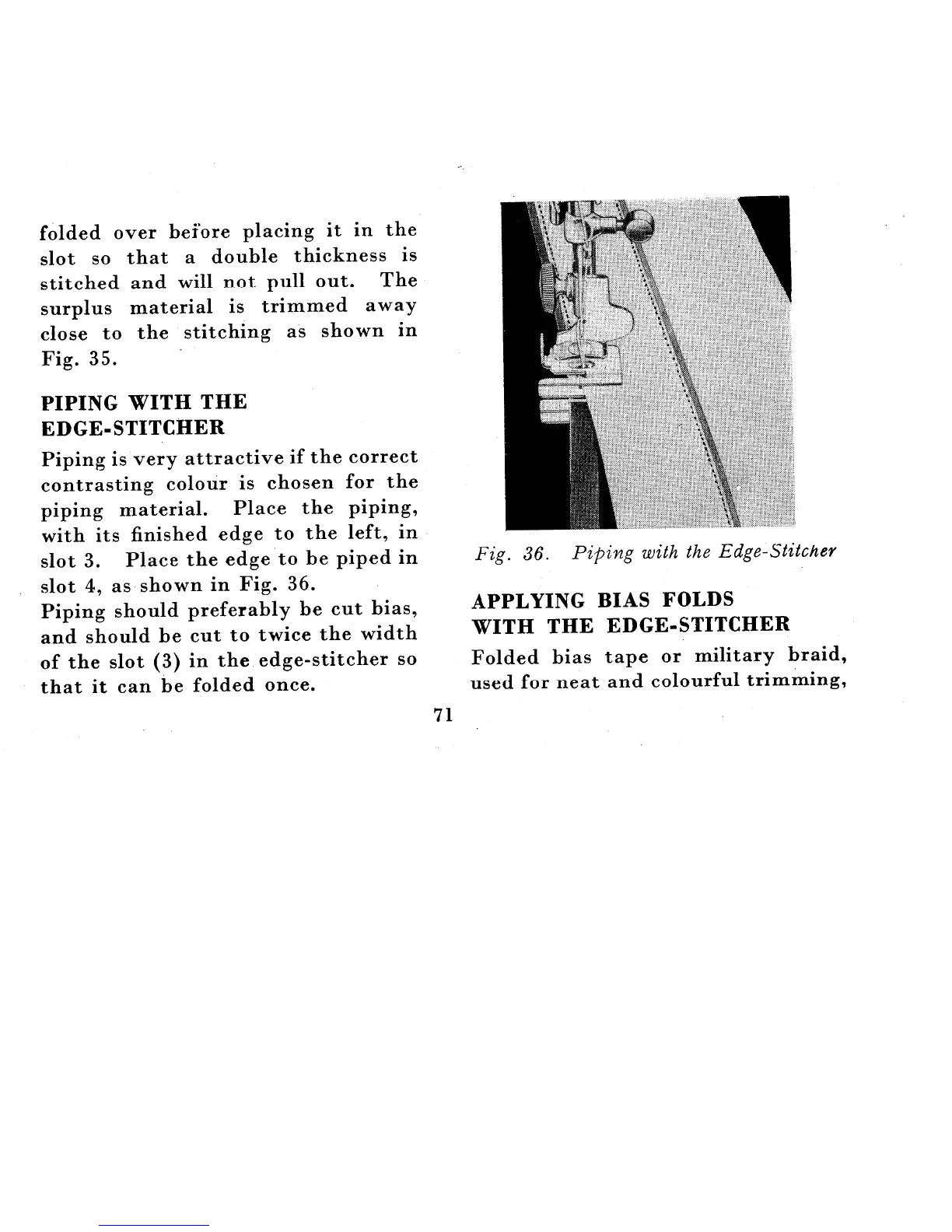 Singer 222K - Edge-Stitcher: Piping and Bias Folds; Piping with the Edge-Stitcher; Applying Bias Folds with Edge-Stitcher