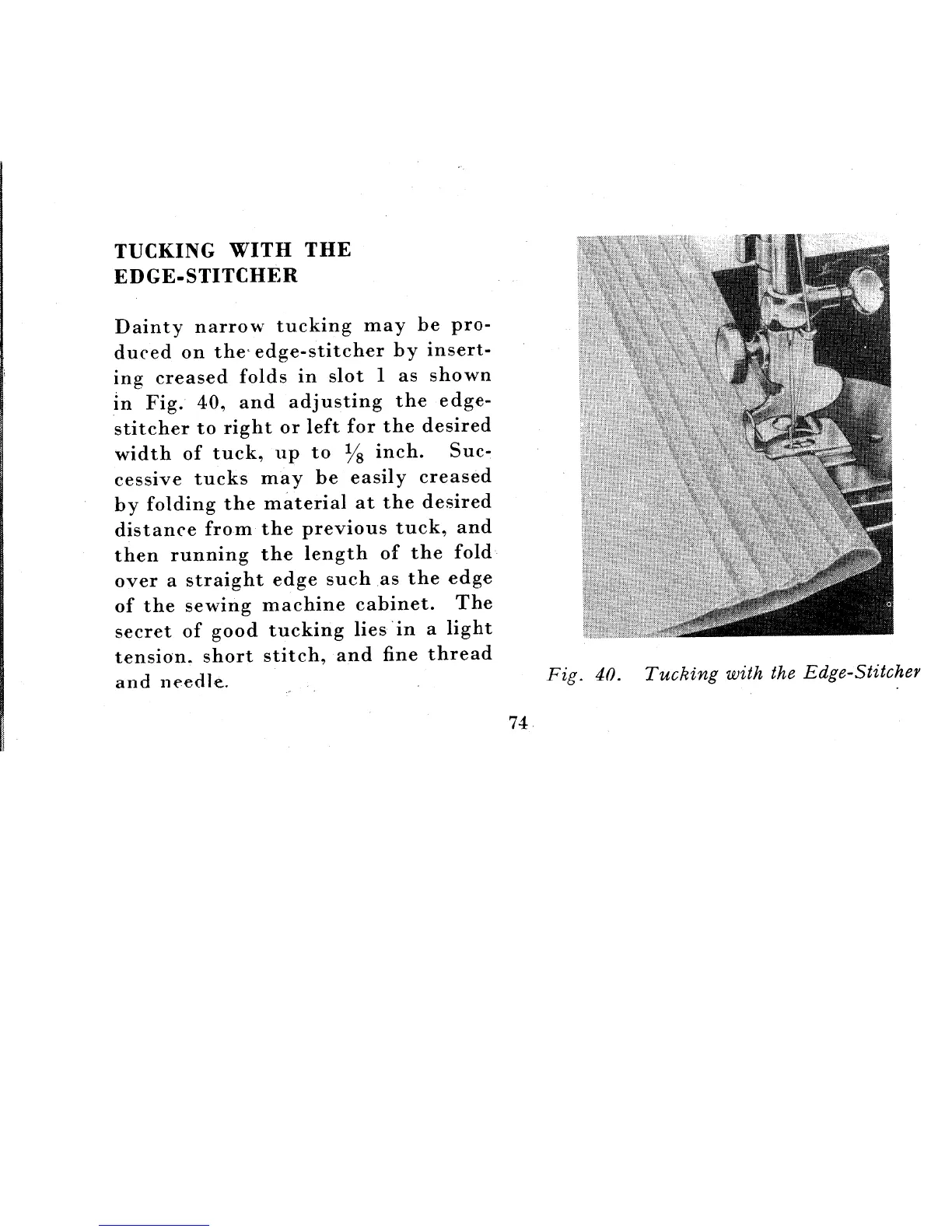 Singer 222K - Edge-Stitcher: Tucking Techniques; Producing Narrow Tucking