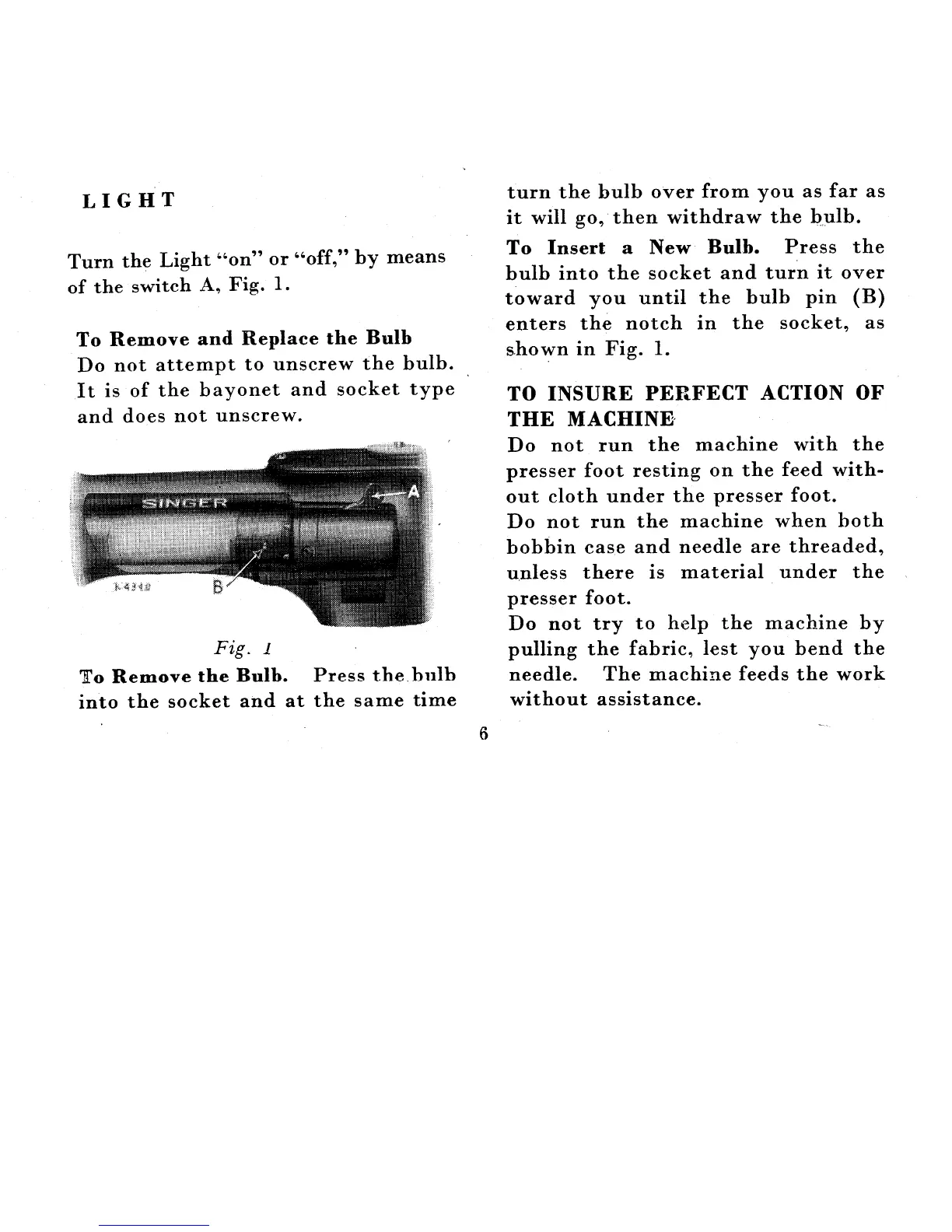 Singer 222K - Machine Lighting and Proper Usage; Ensuring Optimal Machine Performance