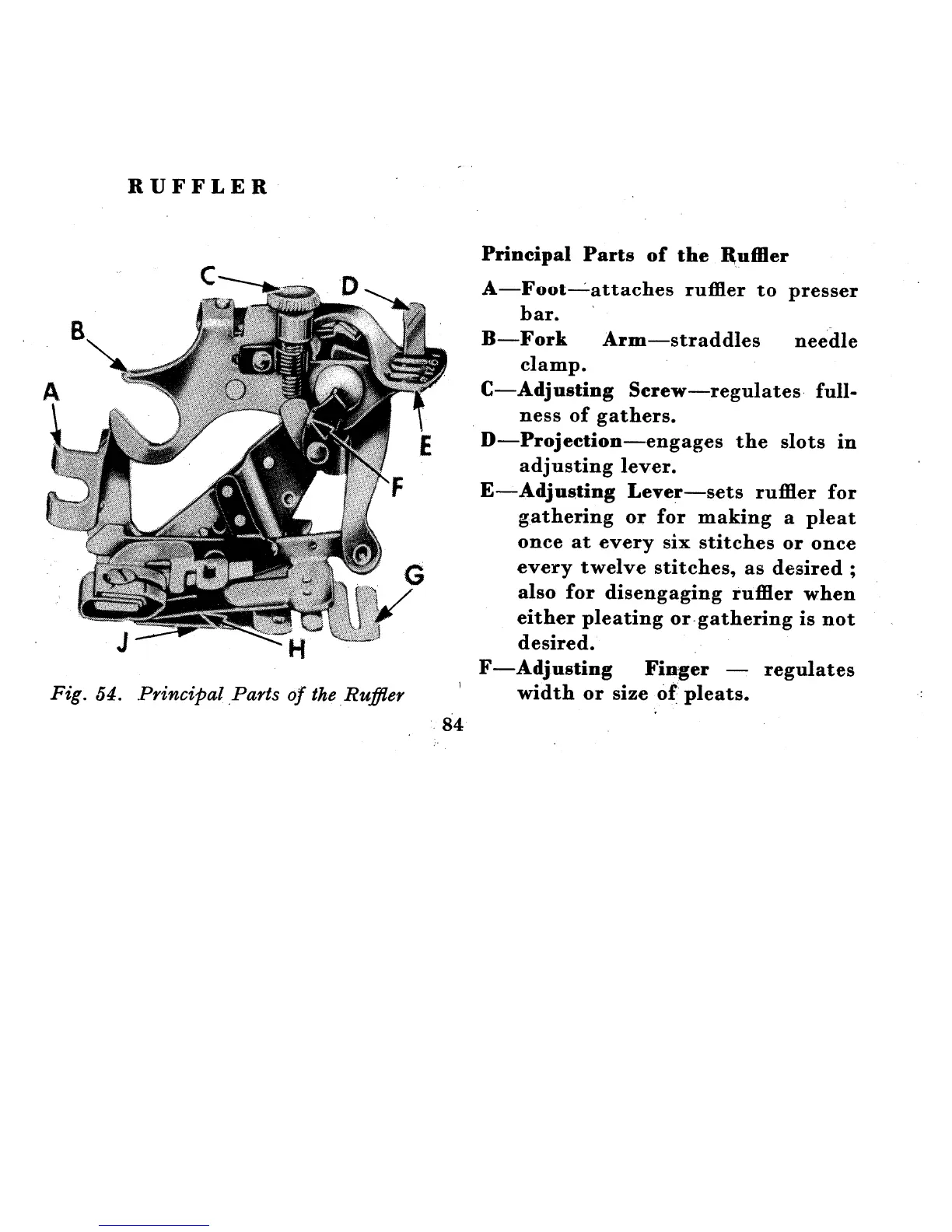 Singer 222K - The Ruffler Attachment; Principal Parts of the Ruffler