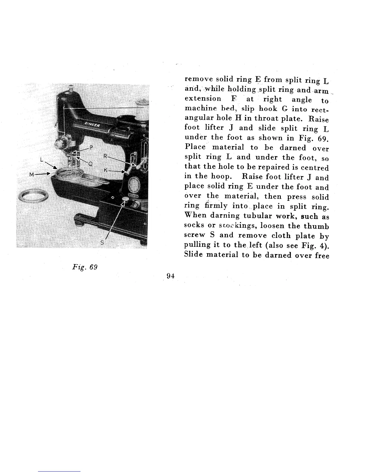 Singer 222K - Darning Procedure with Hoop; Securing Material in Darning Hoop