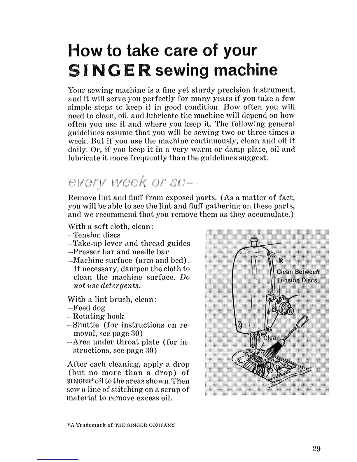Singer 223 - How to Take Care of Your Sewing Machine; Weekly Cleaning and Oiling