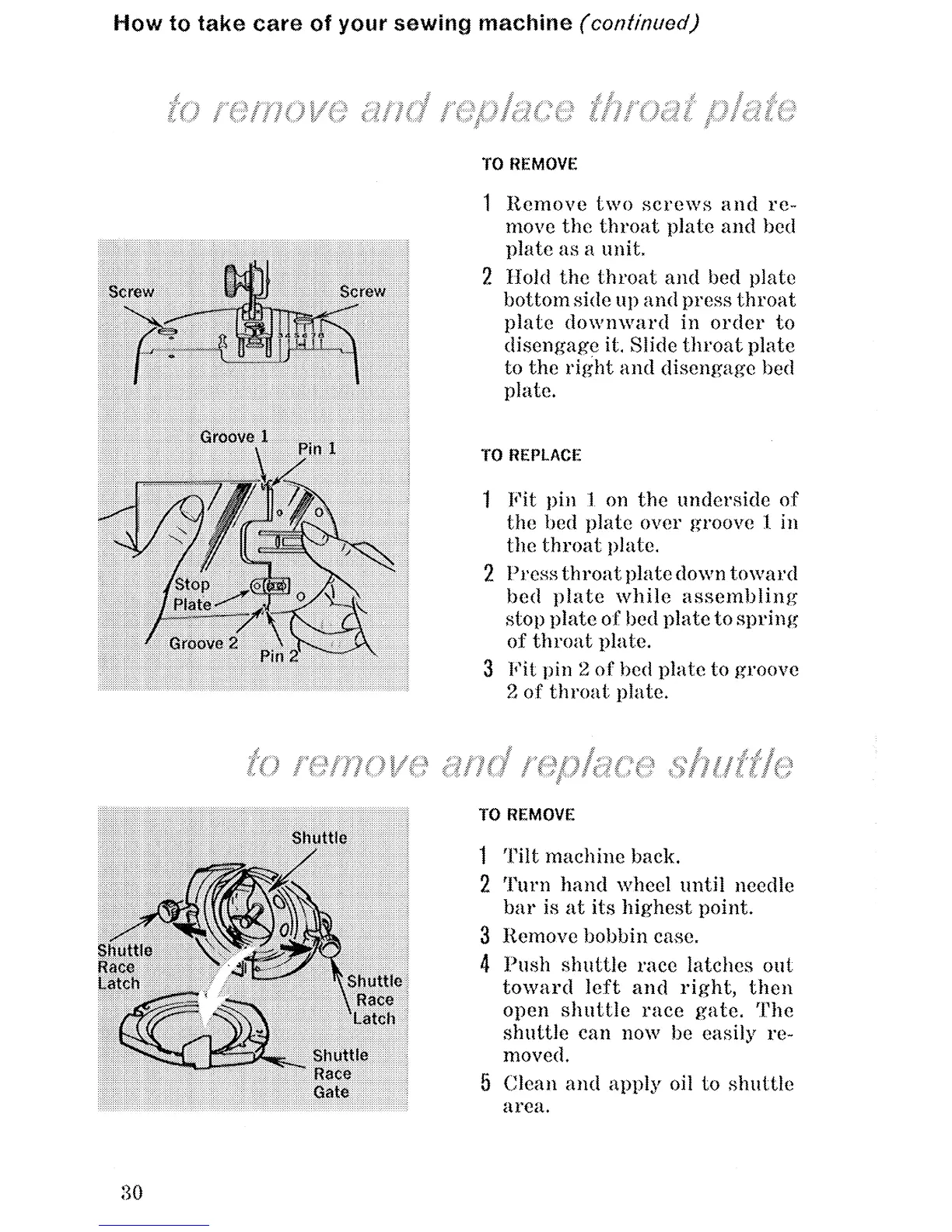 Singer 223 - Removing and Replacing Throat Plate; Removing and Replacing Shuttle