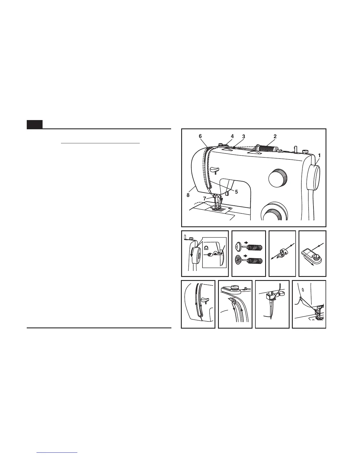 - Pull about 6-8 inches of thread to the rear beyond the needle