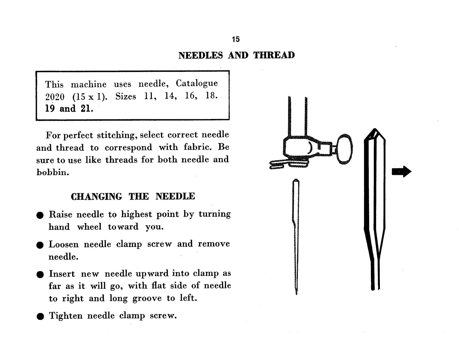 Singer 237 - NEEDLE AND UPPER THREADING; NEEDLES AND THREAD SELECTION