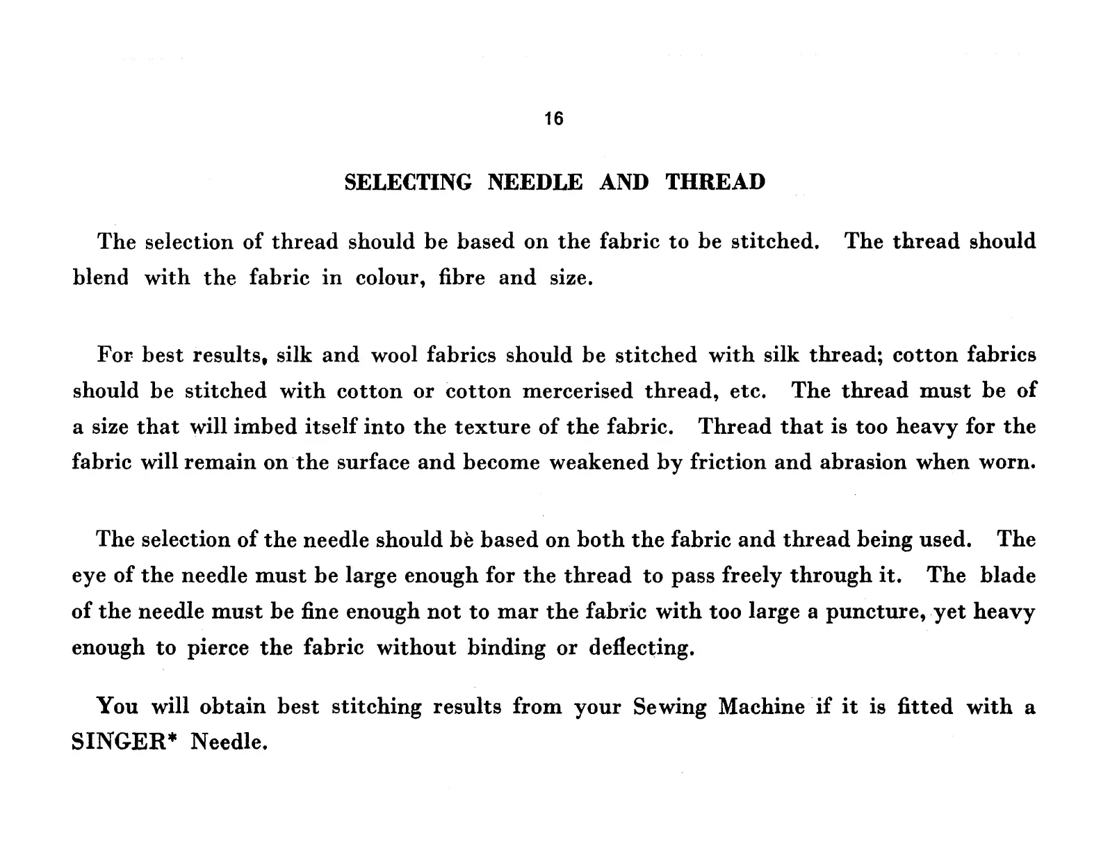 Singer 237 - Selecting Needle and Thread