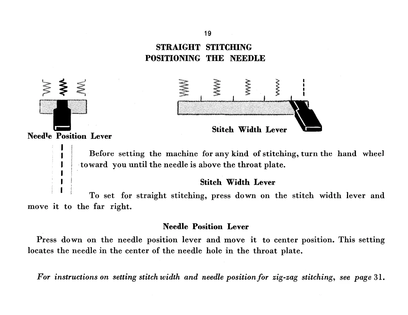 Singer 237 - STITCH SETTINGS AND REGULATION; STRAIGHT STITCHING SETUP