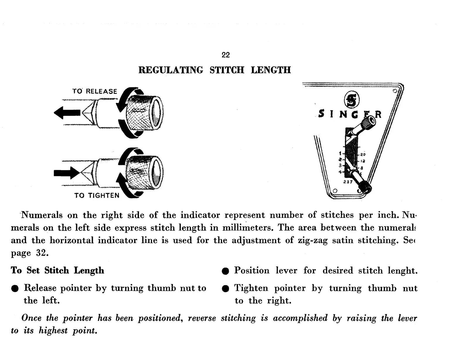 Singer 237 - STITCH LENGTH AND PRESSURE CONTROL