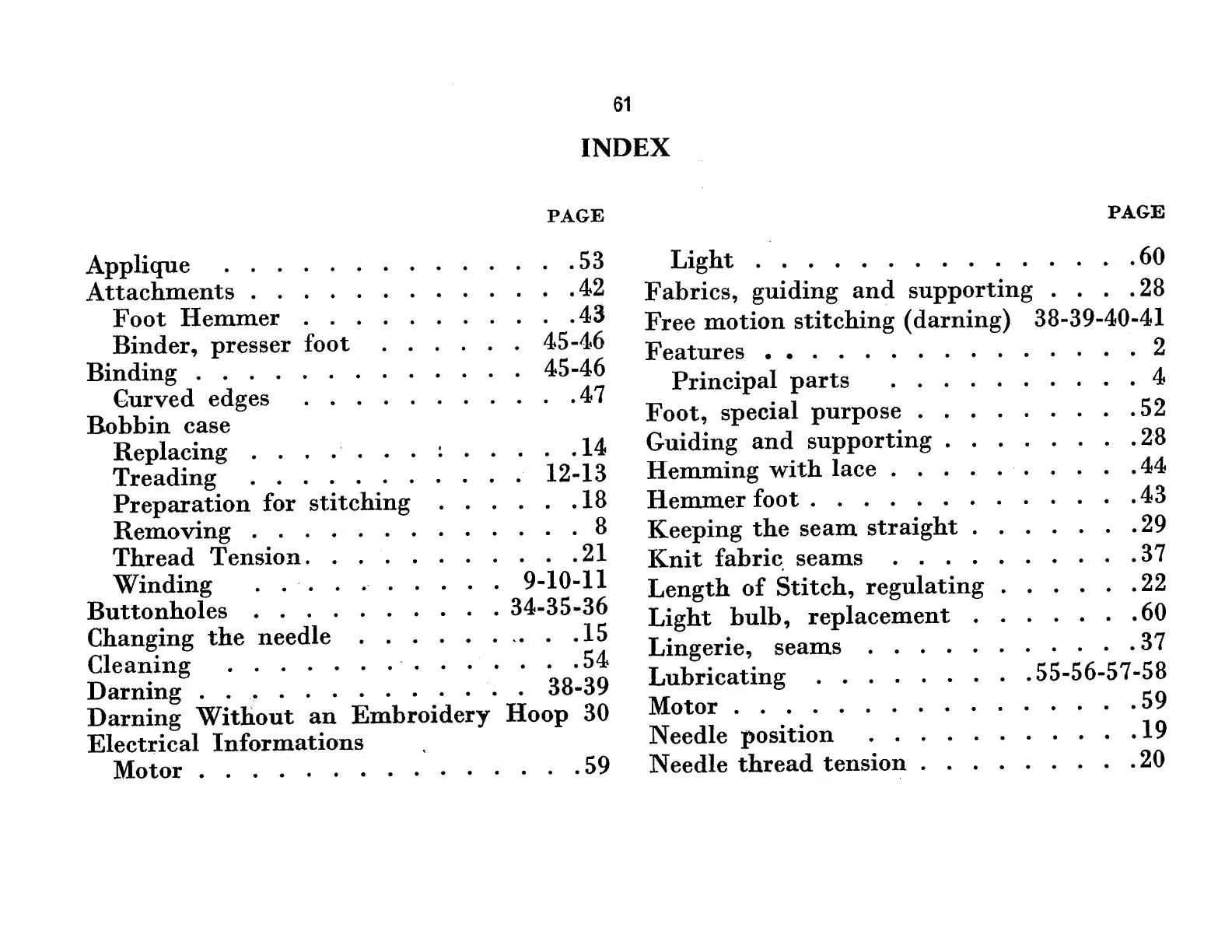 Singer 237 - Index