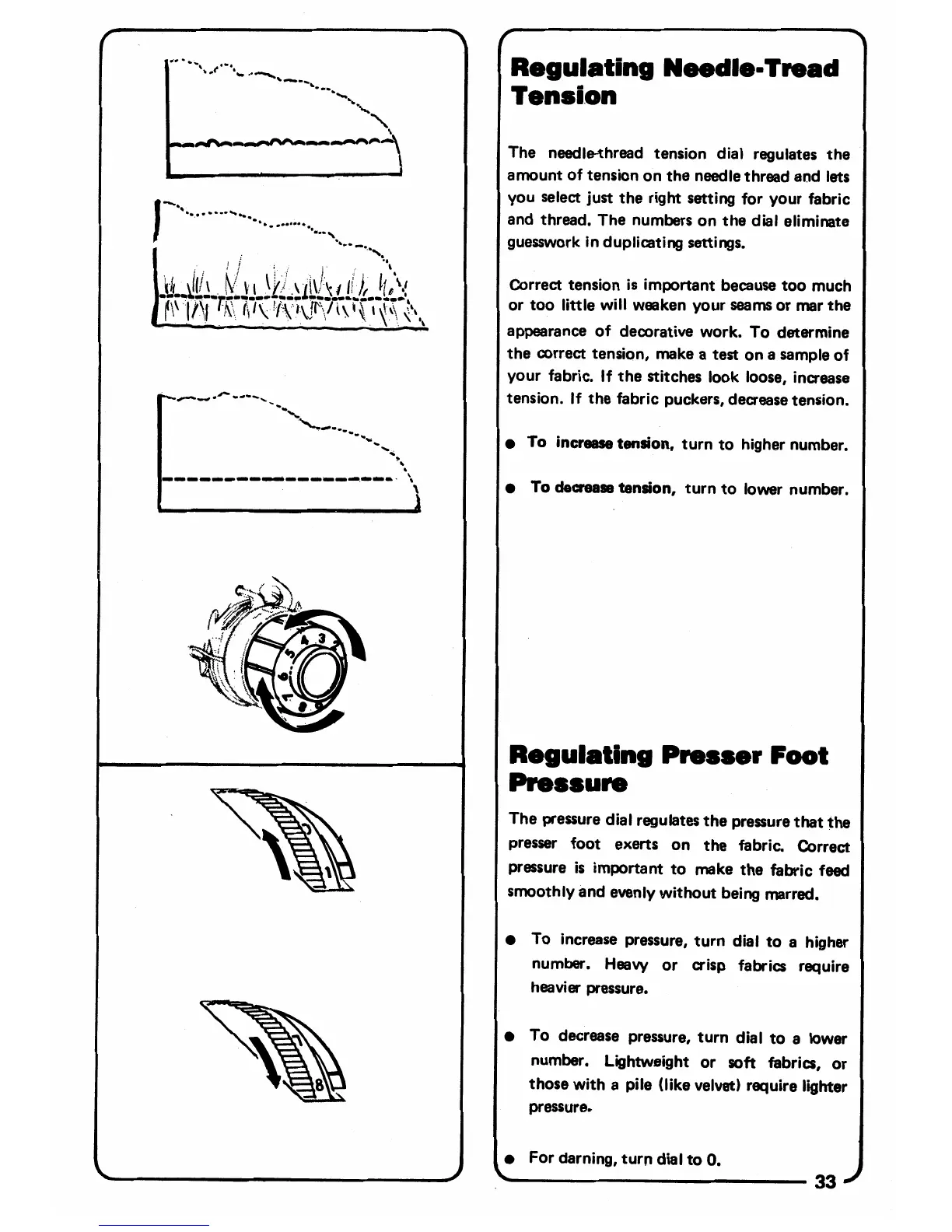 Singer 2405 - Adjusting Tension and Pressure; Regulating Needle-Thread Tension; Regulating Presser Foot Pressure