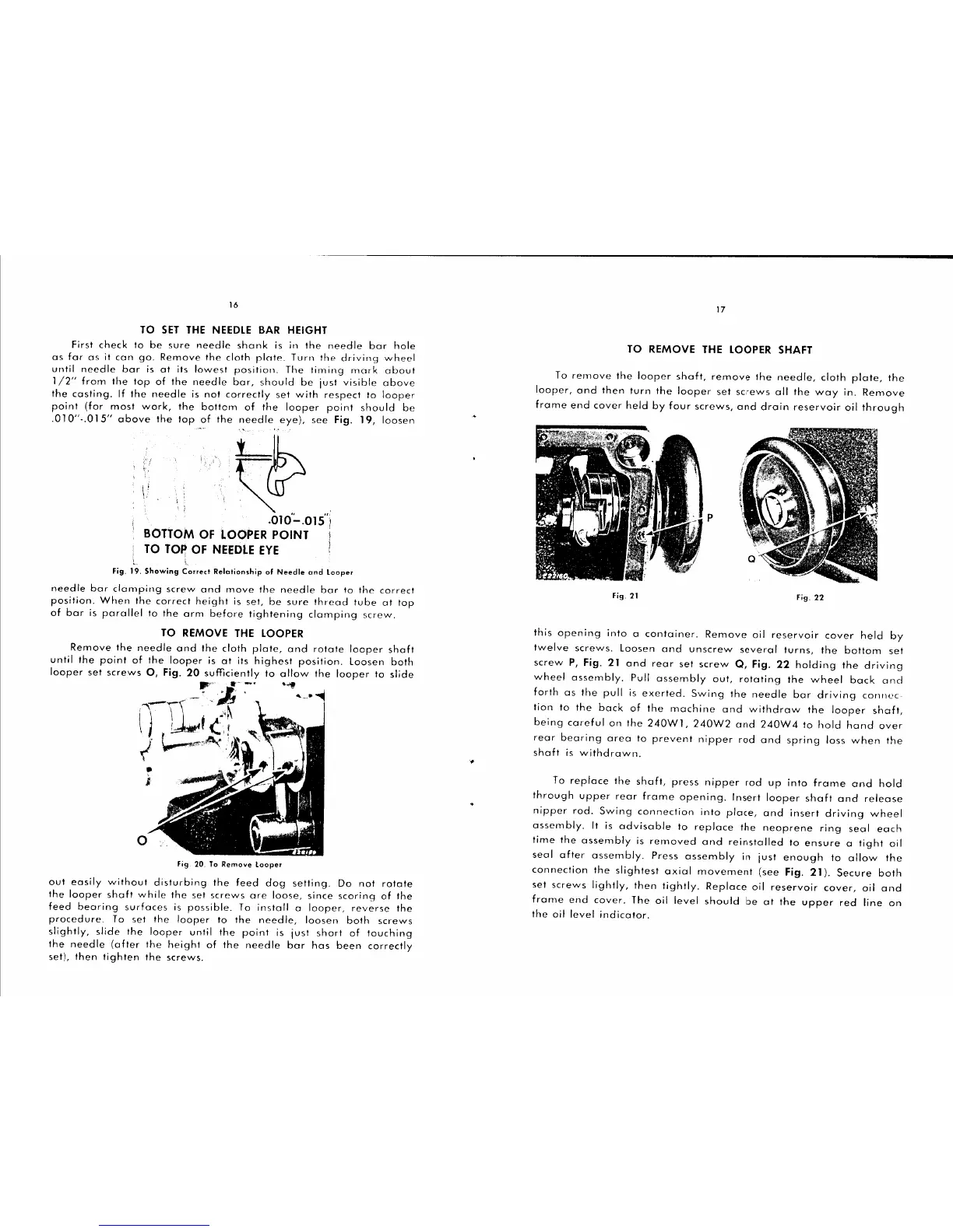Singer 240W - To Set the Needle Bar Height; To Remove the Looper; To Remove the Looper Shaft