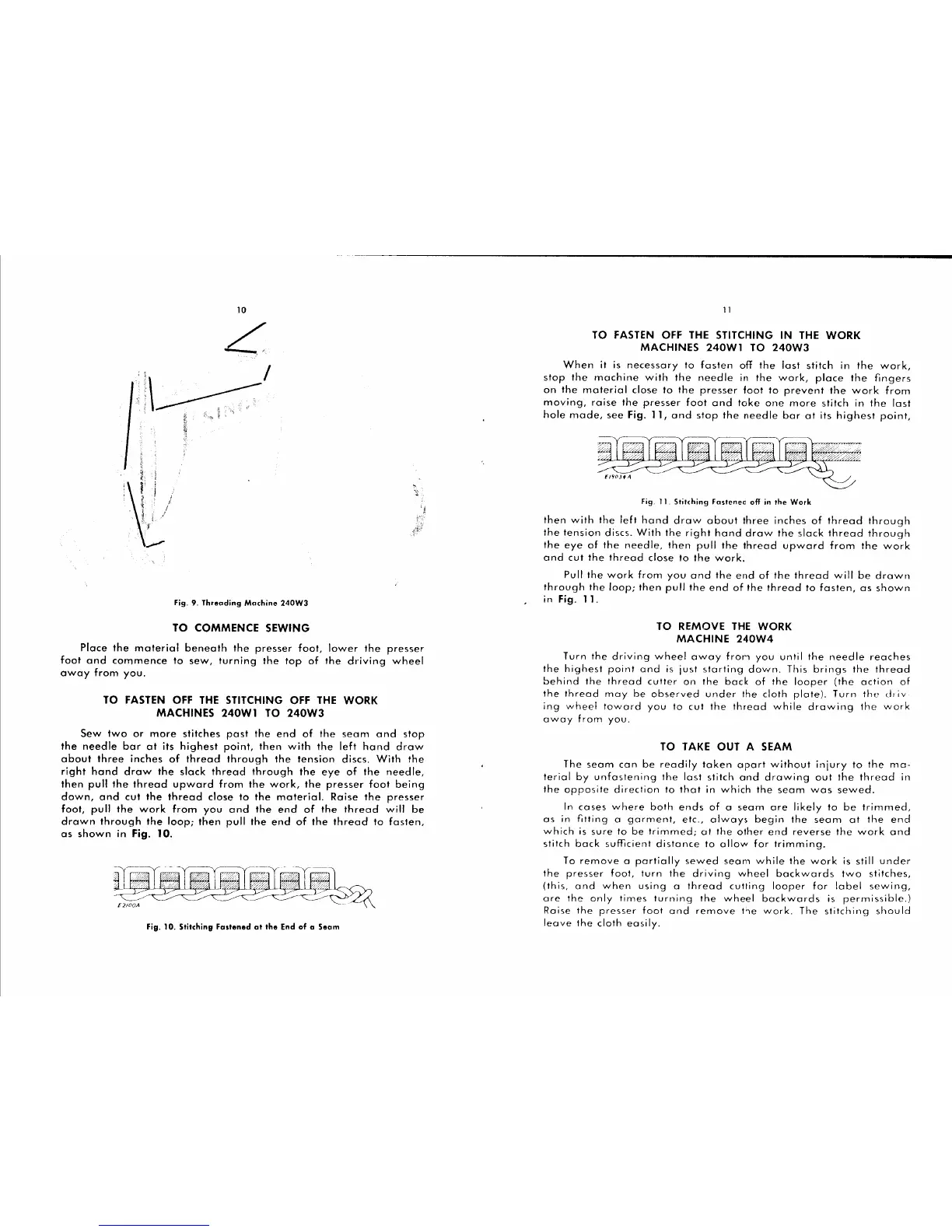 Singer 240W - To Commence Sewing; To Fasten off the Stitching off the Work Machines; To Remove the Work Machine; To Take out a Seam