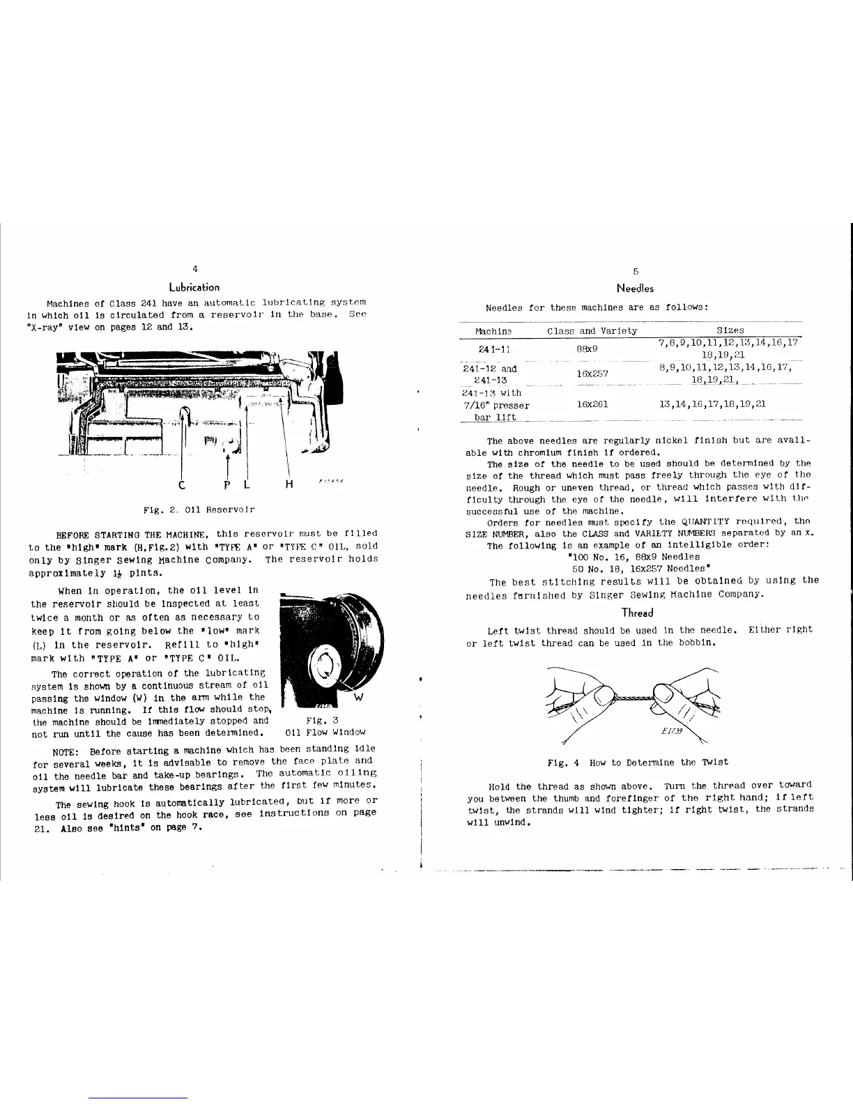 Singer 241-13 - Lubrication System; Oil Reservoir and Levels; Monitoring Oil Flow; Pre-operation Lubrication