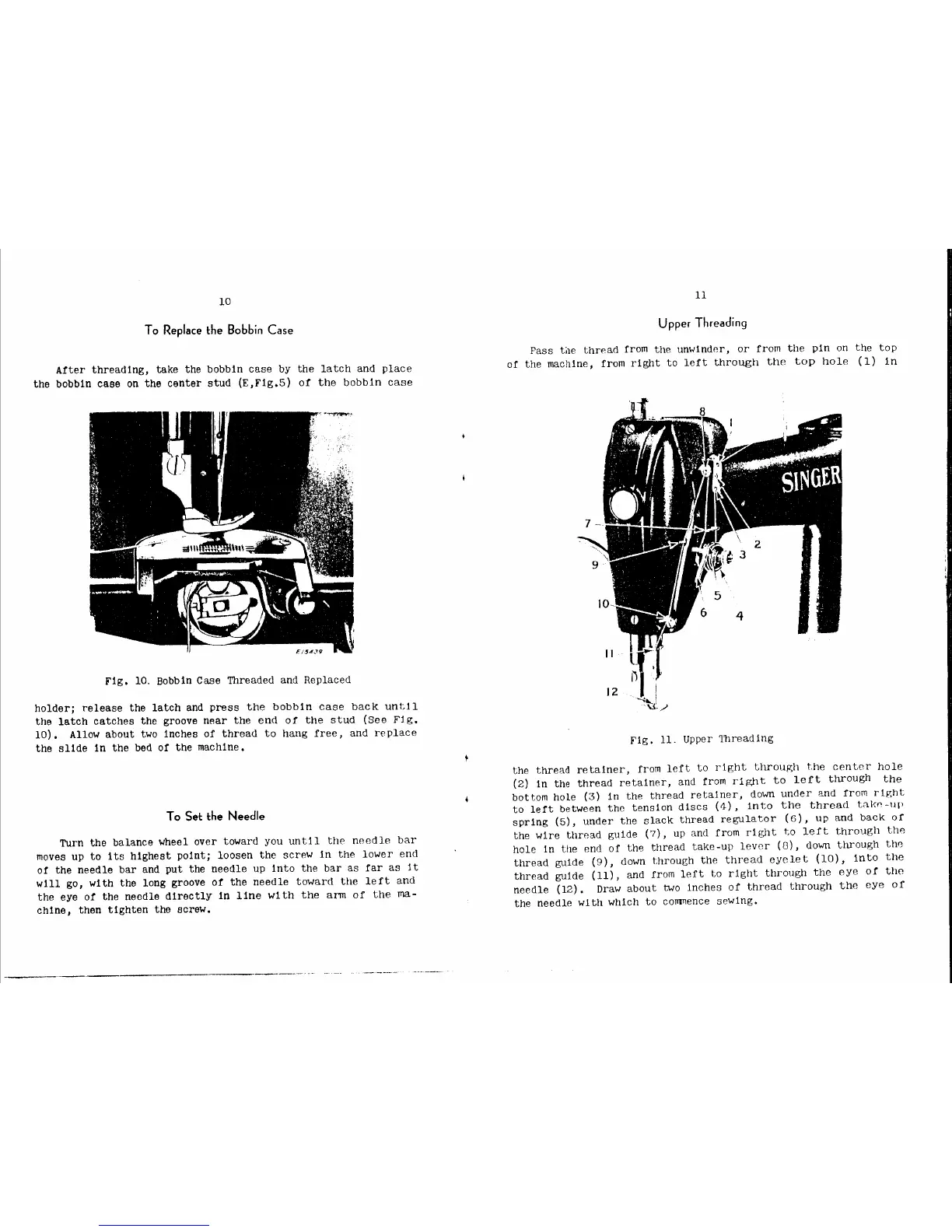 Singer 241 - To Replace the Bobbin Case; To Set the Needle; Upper Threading; Bobbin Case Threaded and Replaced