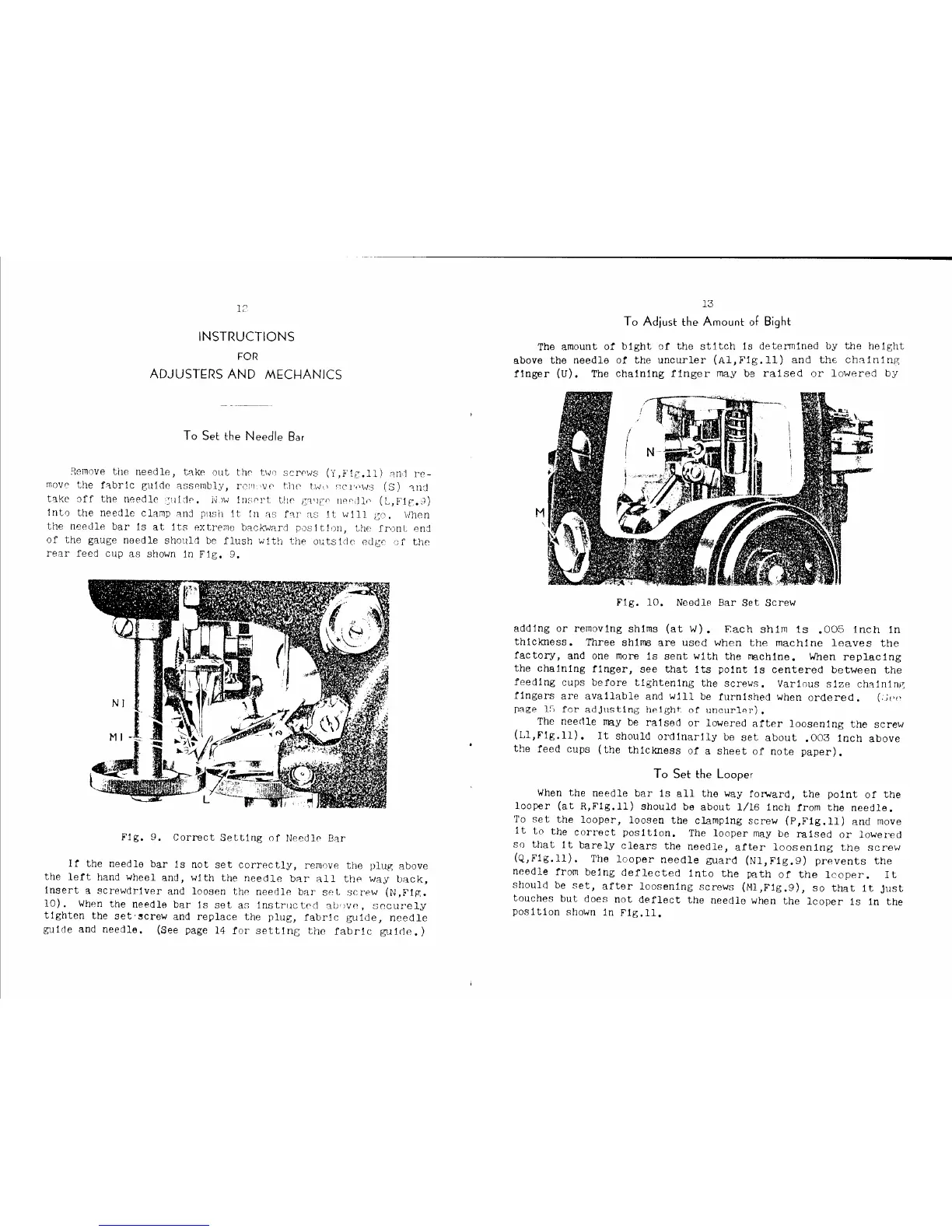 Singer 242-1 - Adjustments for Mechanics; Setting the Needle Bar; Adjusting Stitch Bight; Setting the Looper
