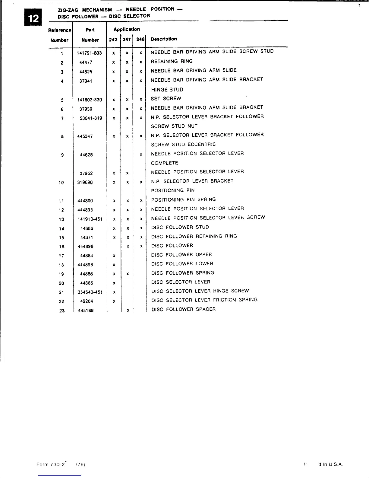 Singer 242 - ZIG-ZAG MECHANISM Components; Needle Position Selector Lever Complete; Needle Position Selector Lever; Disc Selector Lever