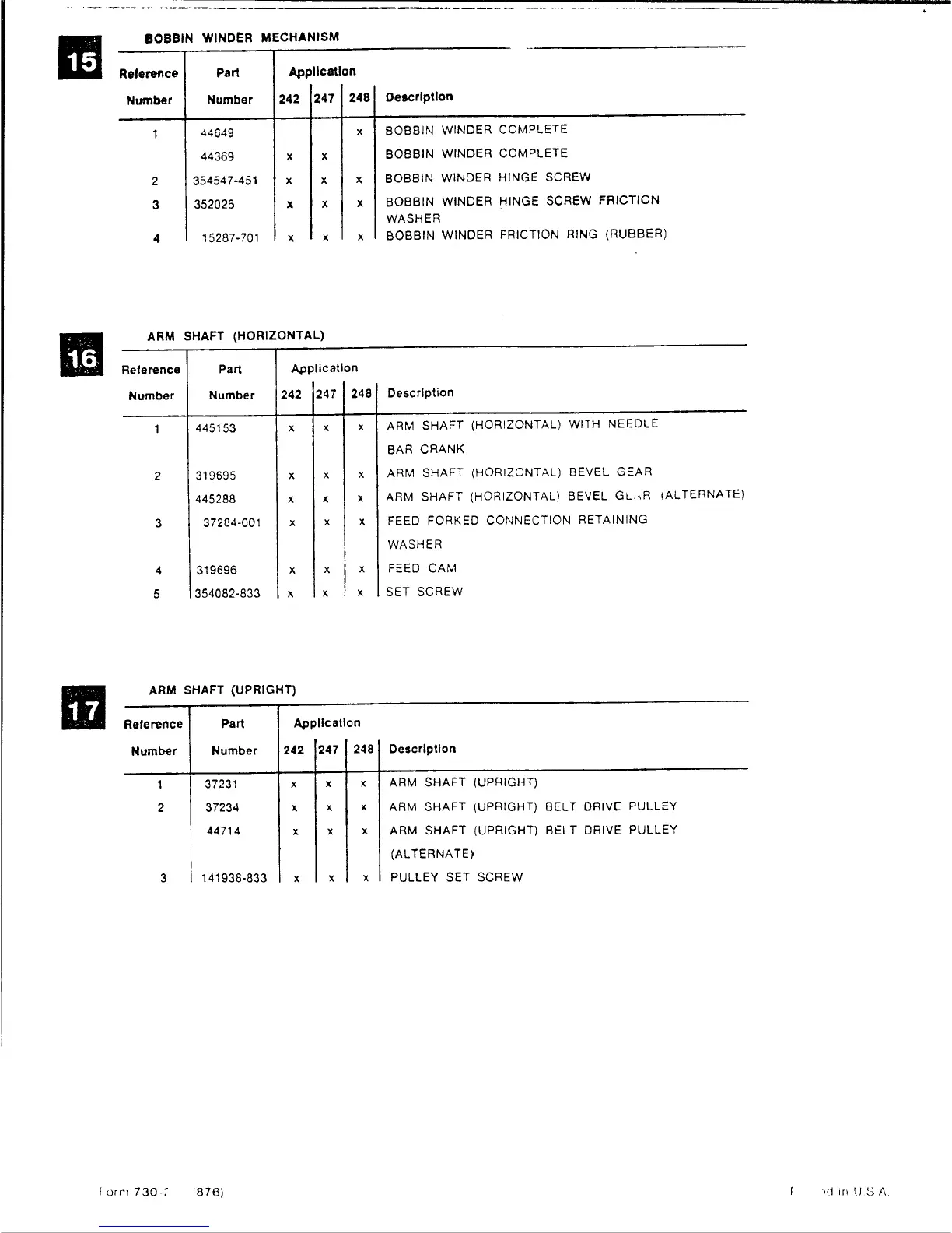 Singer 242 - BOBBIN WINDER MECHANISM; Bobbin Winder Complete; HORIZONTAL ARM SHAFT; Arm Shaft (Horizontal) With Needle Bar Crank
