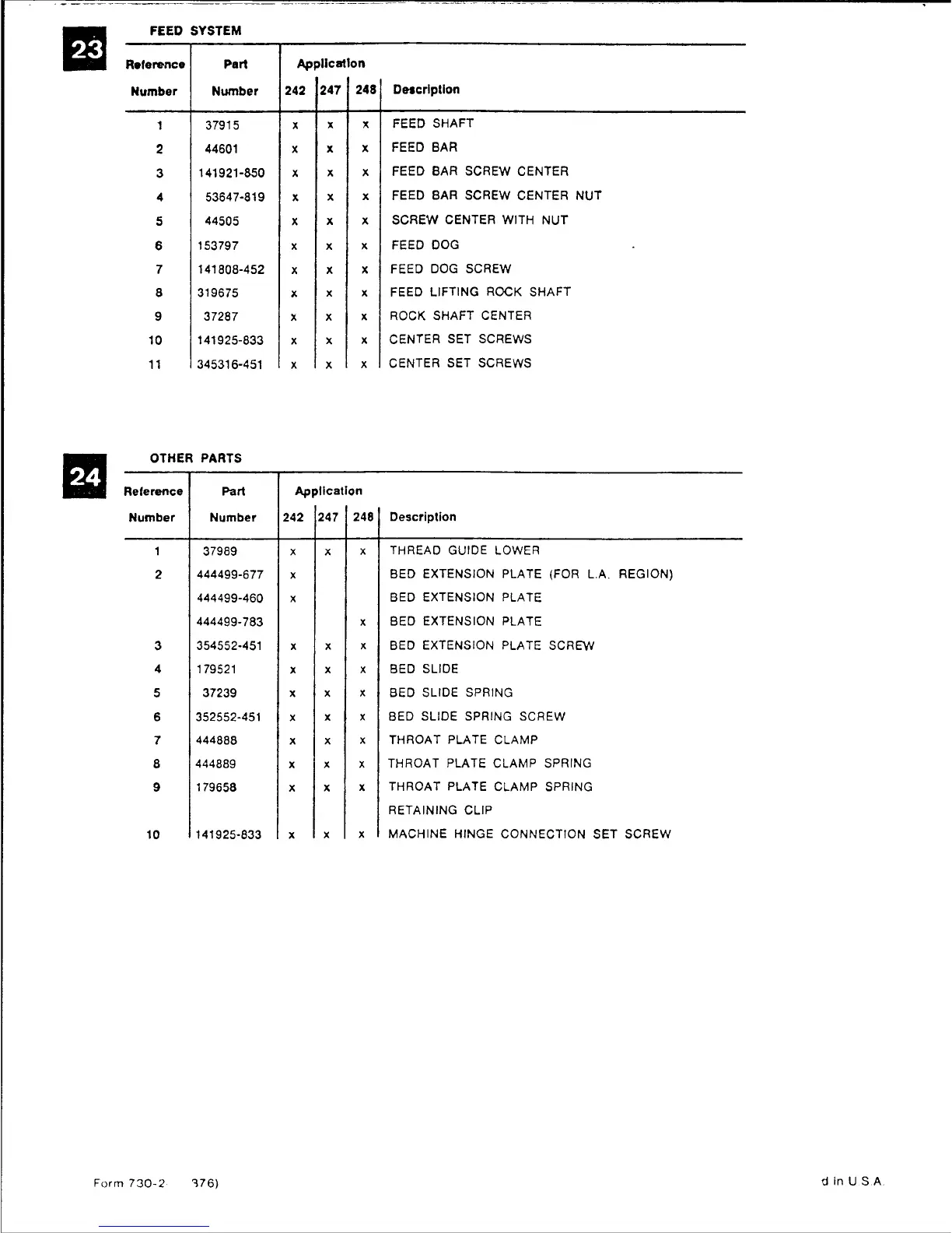 Singer 242 - FEED SYSTEM Components; Feed Shaft; Feed Bar; Feed Dog