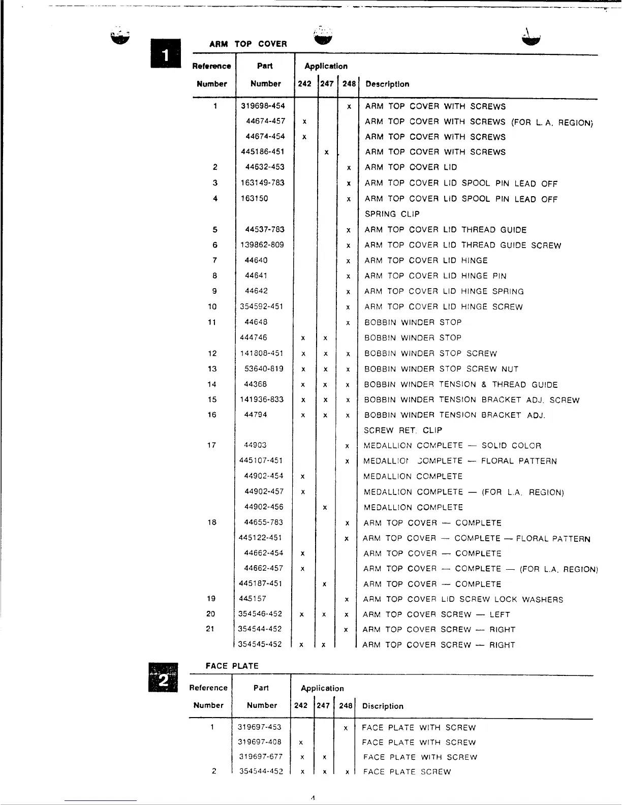 Singer 242 - ARM TOP COVER Components; Arm Top Cover Complete