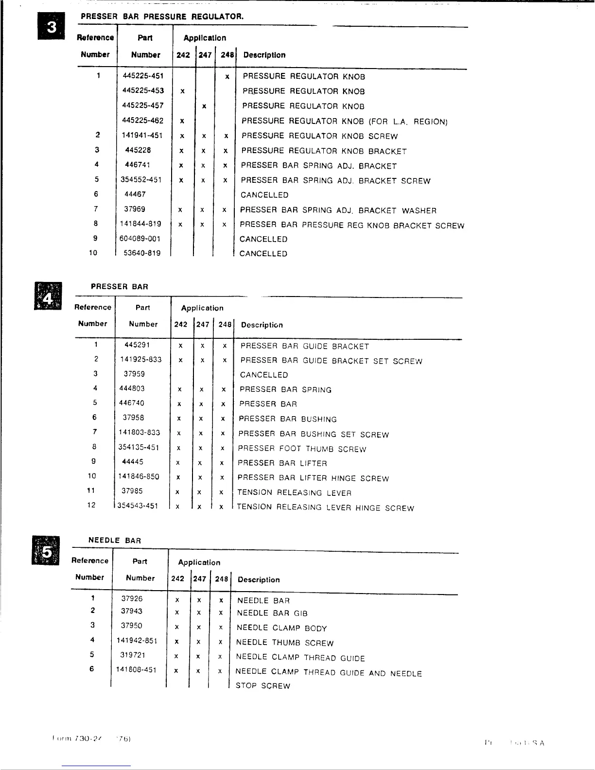 Singer 242 - PRESSER BAR PRESSURE REGULATOR; Pressure Regulator Knob; Presser Bar Spring Adj. Bracket; PRESSER BAR Assembly