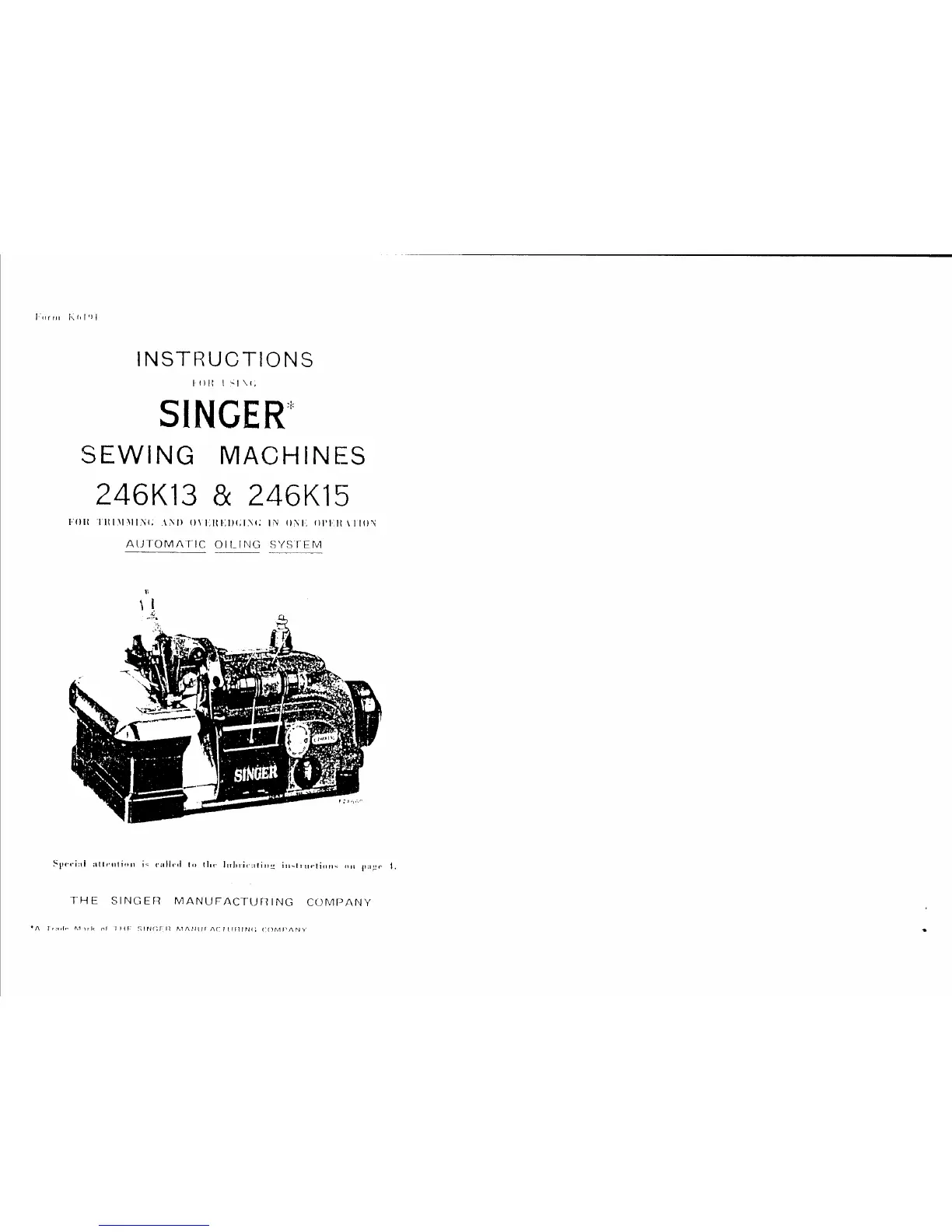 Singer 246K13 - Singer Sewing Machine Manual: 246 K13 & 246 K15