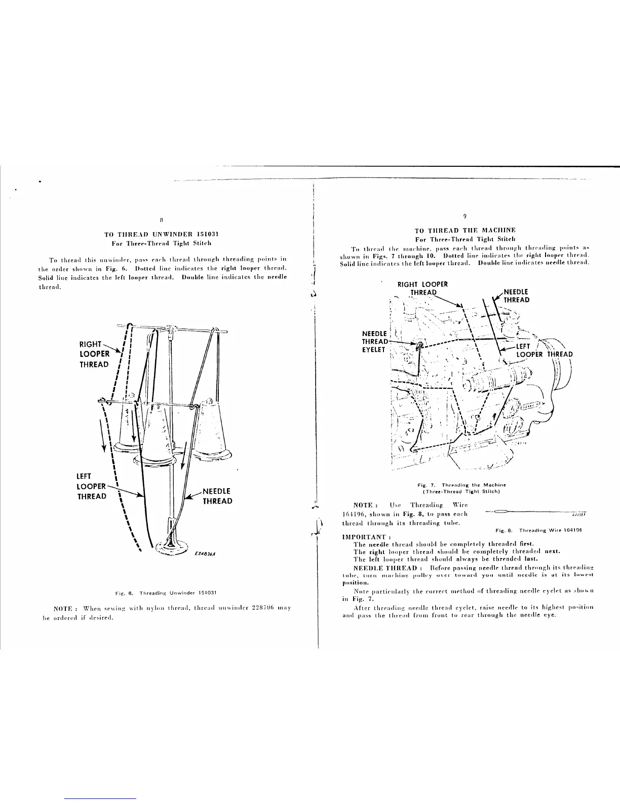 Singer 246K13 - Unwinder Threading (Three-Thread Tight Stitch); Machine Threading (Three-Thread Tight Stitch)