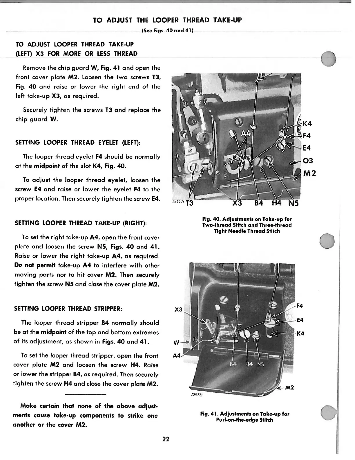 Singer 246K42 - Looper Thread Eyelet, Setting; Looper Thread Stripper; Looper Thread Take-Up, Adjustments