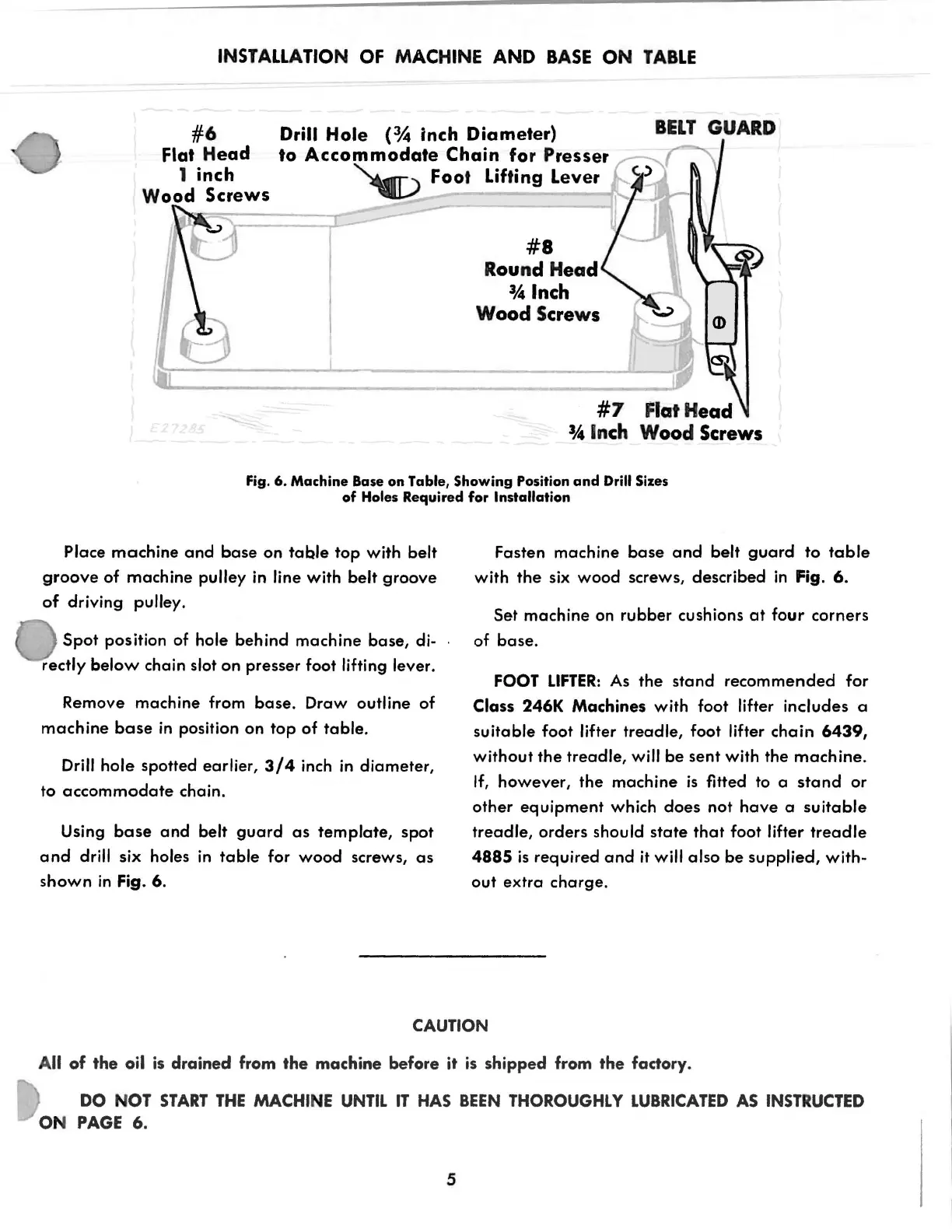 Class 246K Machines with foot lifter includes a
