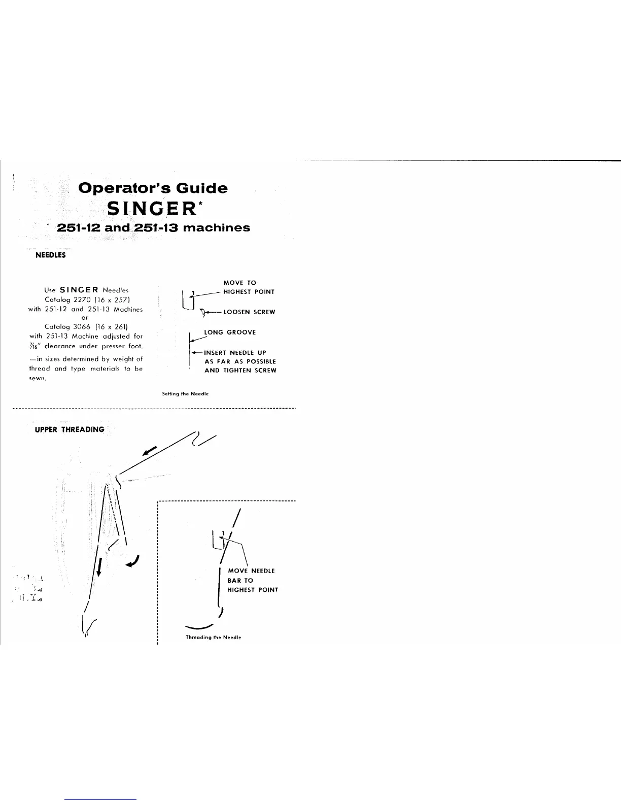 Singer 251-12 - Operators Guide for SINGER 251-12 and 251-13 Machines; Needle Selection and Insertion; Setting the Needle Correctly; Threading the Needle