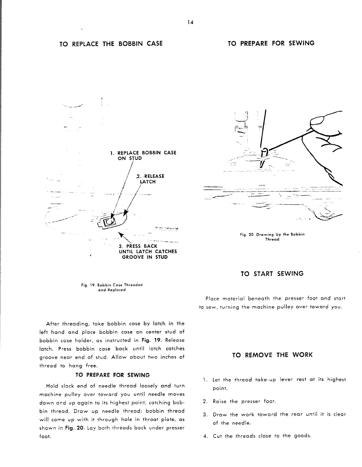 Singer 251-2 - Replacing the Bobbin Case Assembly; Preparing for Sewing; Starting to Sew; Removing the Work