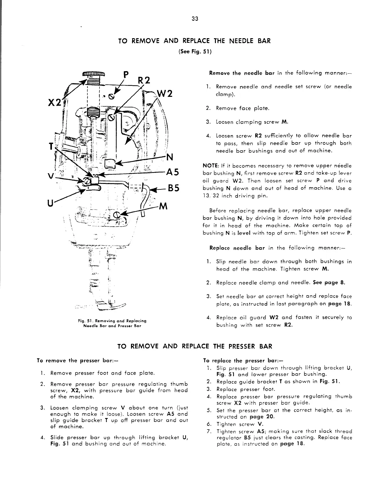 Singer 251-2 - Needle Bar and Presser Bar Procedures; Removing and Replacing the Needle Bar; Removing and Replacing the Presser Bar