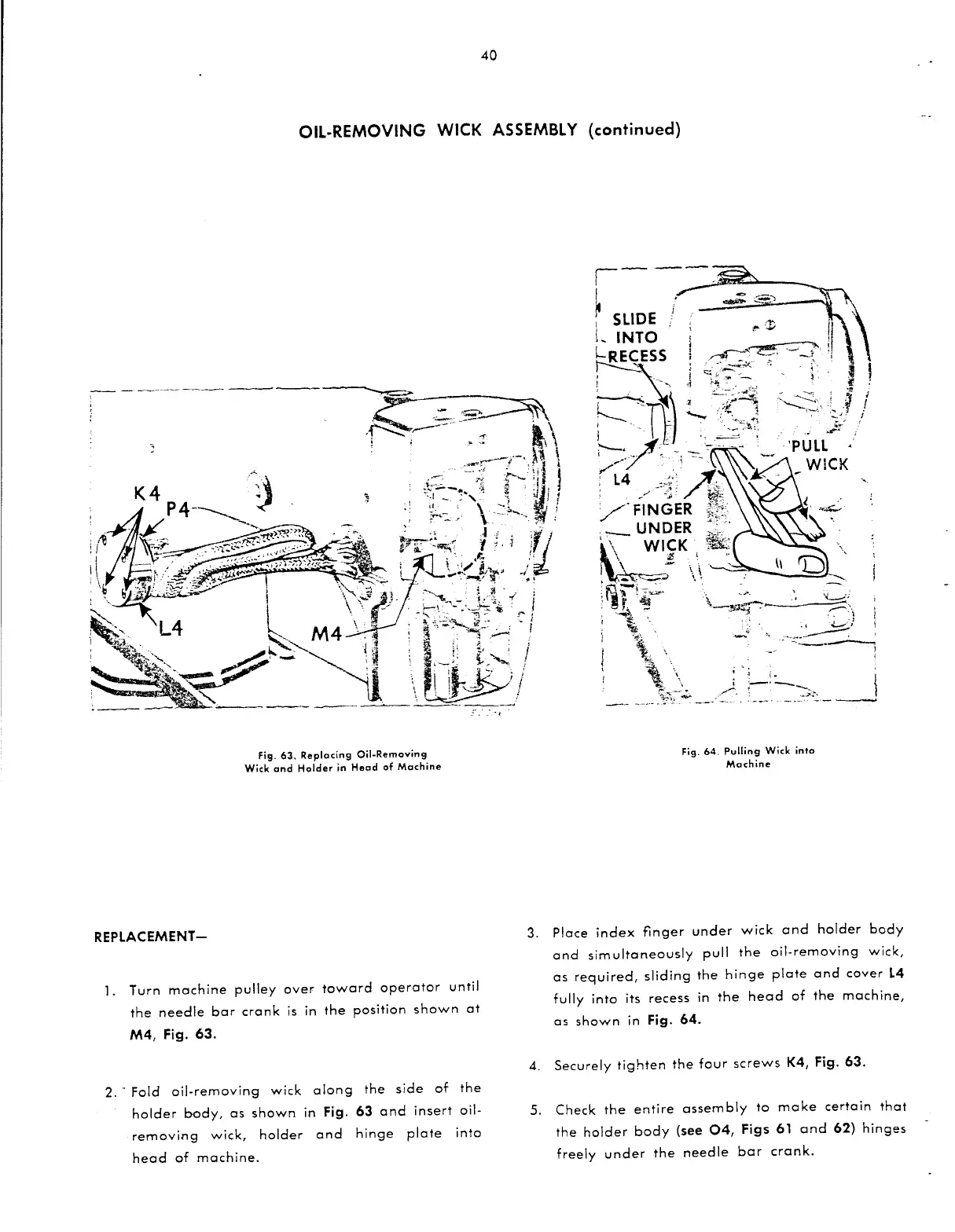 Singer 251-2 - Replacing Oil-Removing Wick Assembly; Replacement Procedure for Wick Assembly