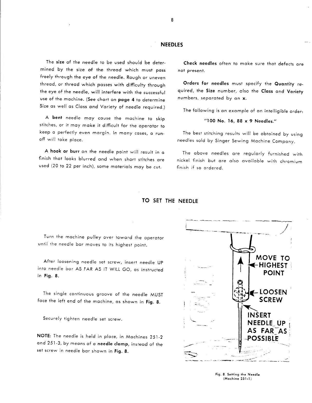 Singer 251-2 - Needles for Class 251 Machines; Setting the Needle Correctly