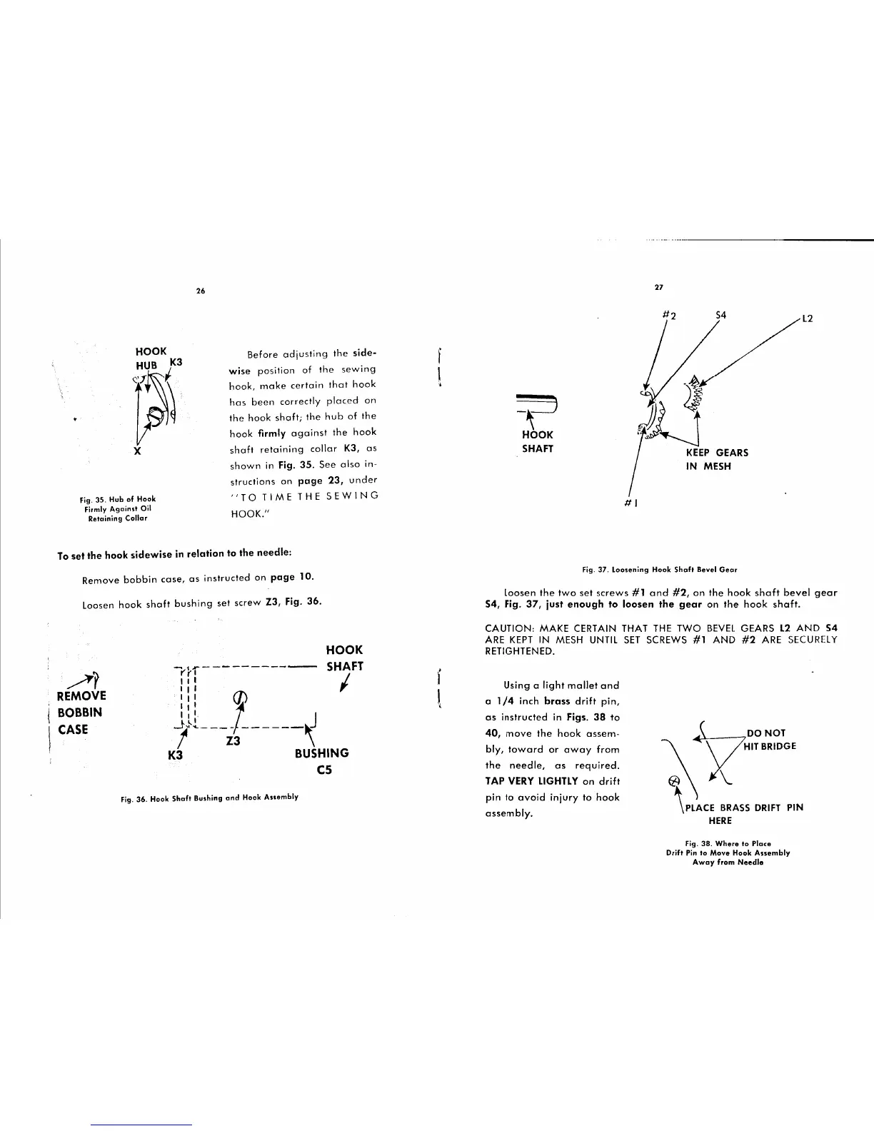 Singer 251 - Hook Shaft Assembly Adjustments; Adjusting Hook Shaft Bevel Gear; Moving Hook Assembly