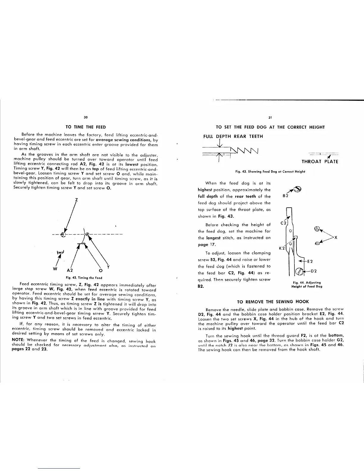 Singer 251 - Feed Timing and Dog Height Adjustment; Timing the Feed Mechanism; Setting Feed Dog Height