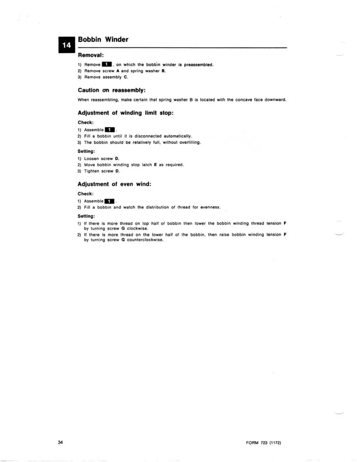 Singer 252 - Bobbin Winder; Removal and Reassembly of Bobbin Winder; Adjustment of Winding Limit Stop; Adjustment of Even Wind