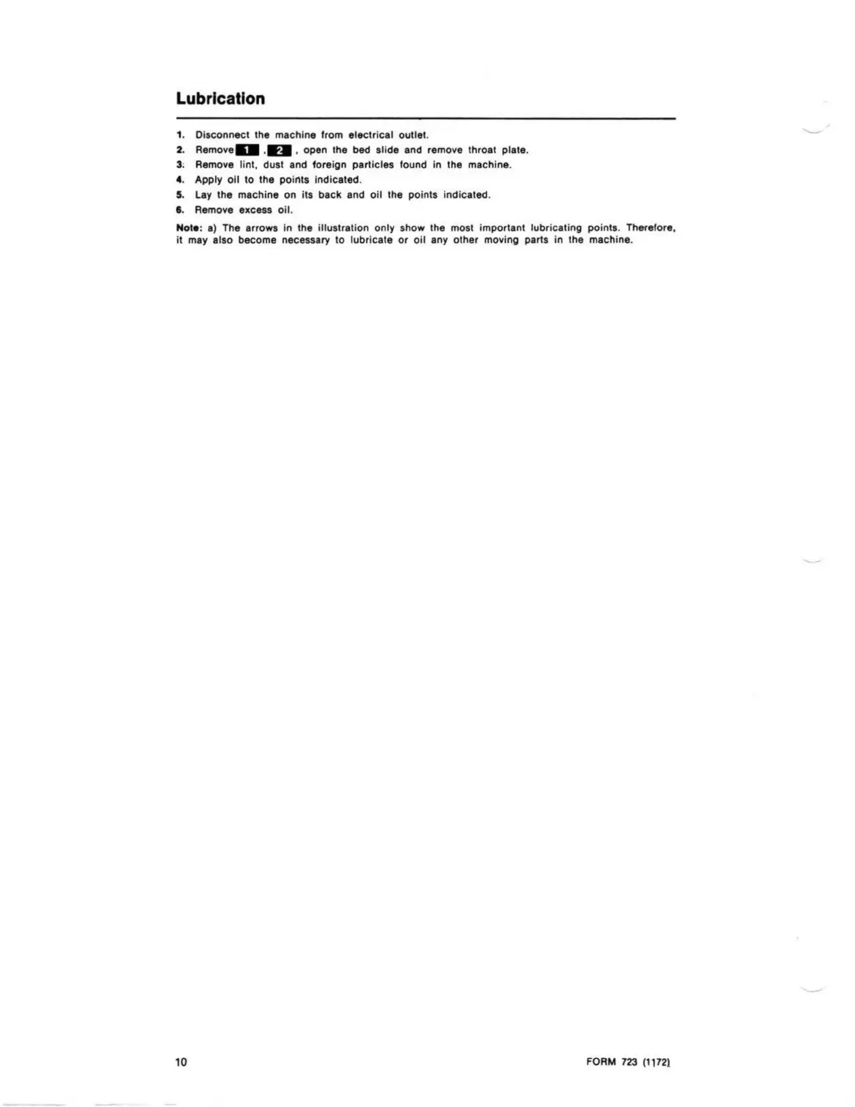 5. Lay the machine on its back and oil the points indicated.
