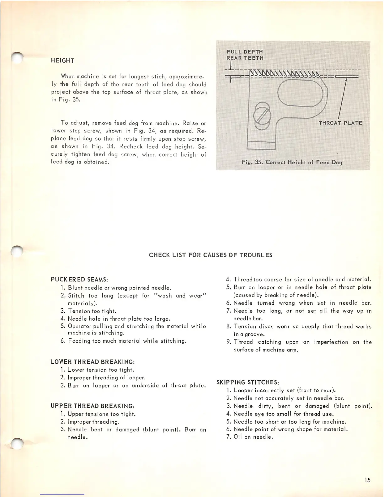 shown in Fig. 34. Recheck feed dog height. Se