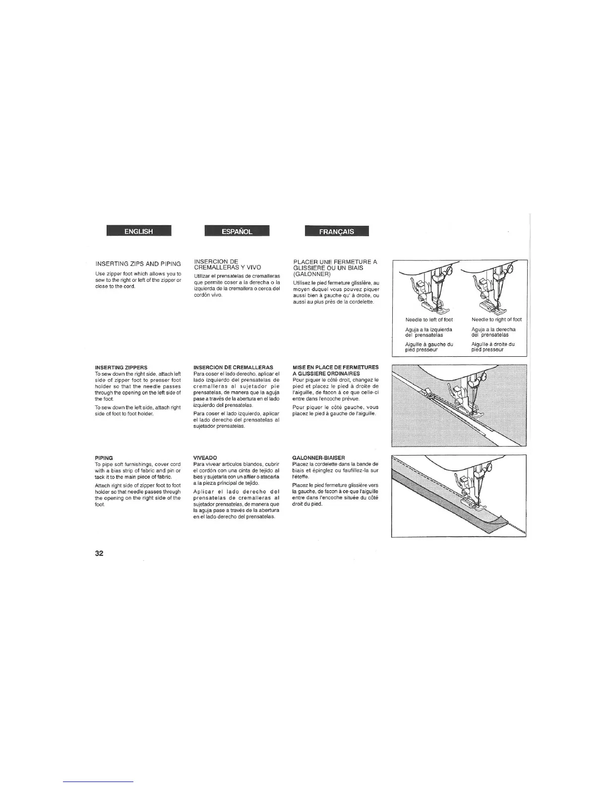 Singer 2638 - Inserting Zips and Piping; Inserting Zippers; Piping