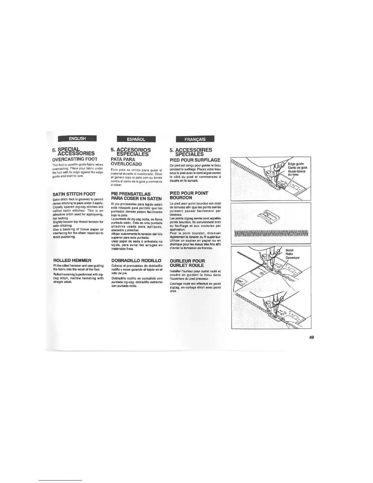 Singer 2638 - Special Accessories; Overcasting Foot; Satin Stitch Foot; Rolled Hemmer