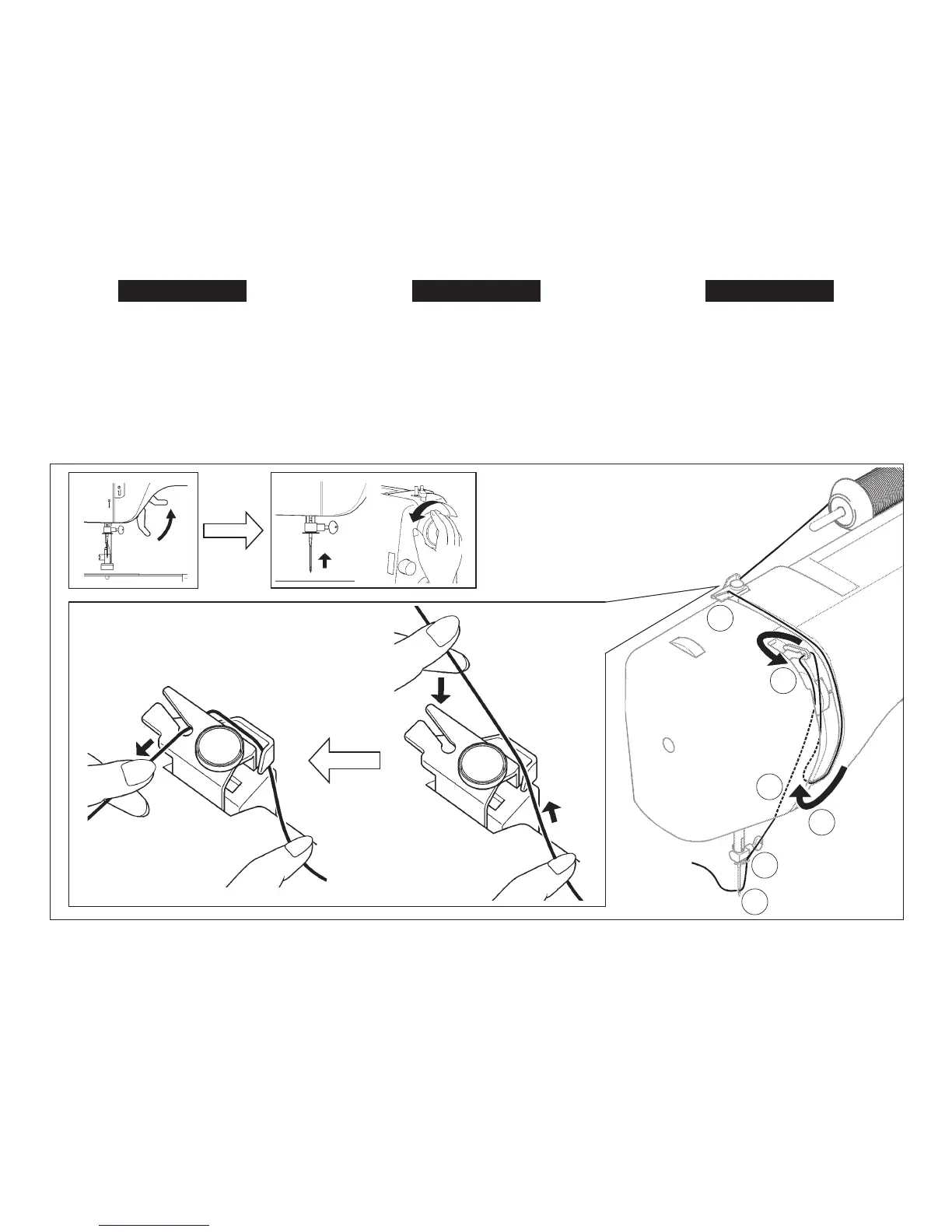 3. Enhebrar la máquina siguiendo el orden de la ilustración.