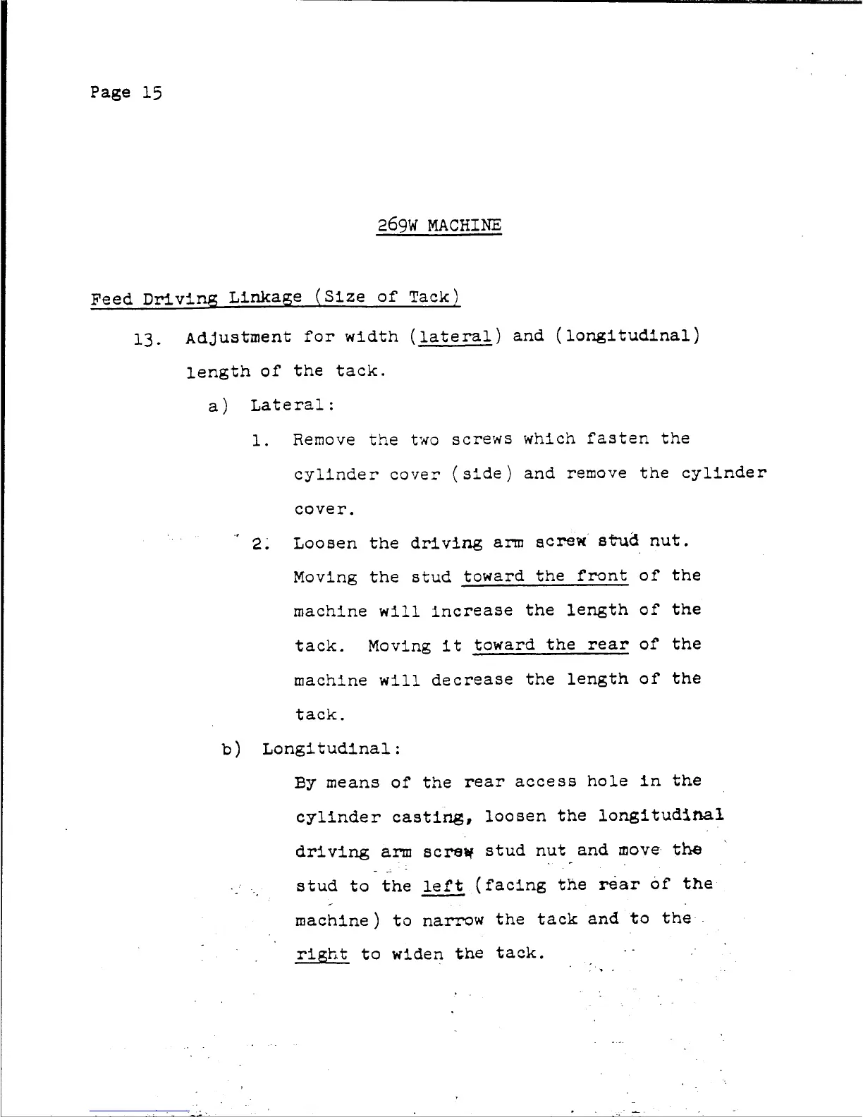 Singer 269W - Feed Driving Linkage - Size of Tracks