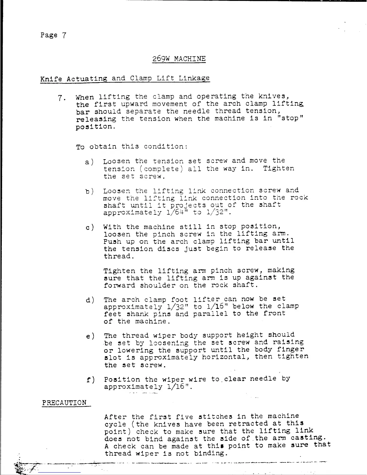Singer 269W - Knife Actuating and Clamp Lift Linkage