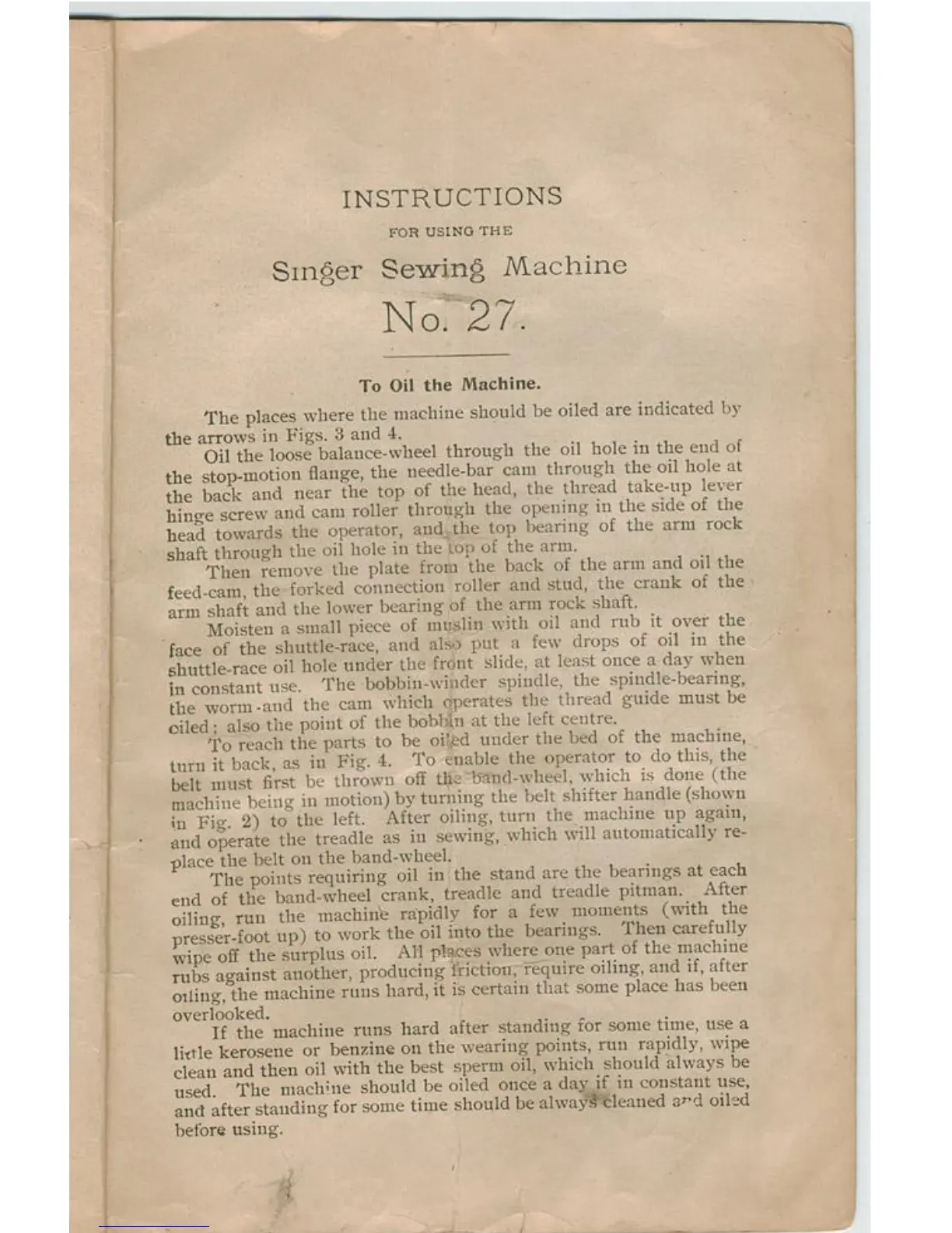 Singer 27 - Machine Operation and Oiling; To Oil the Machine